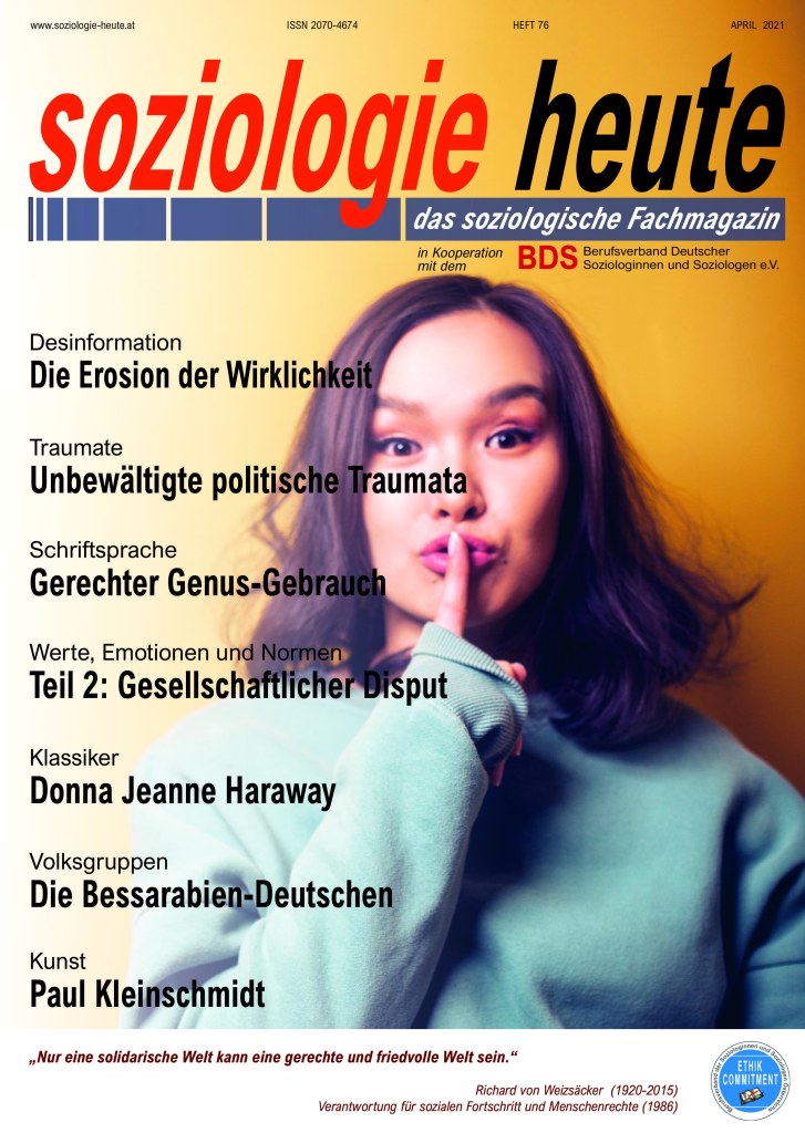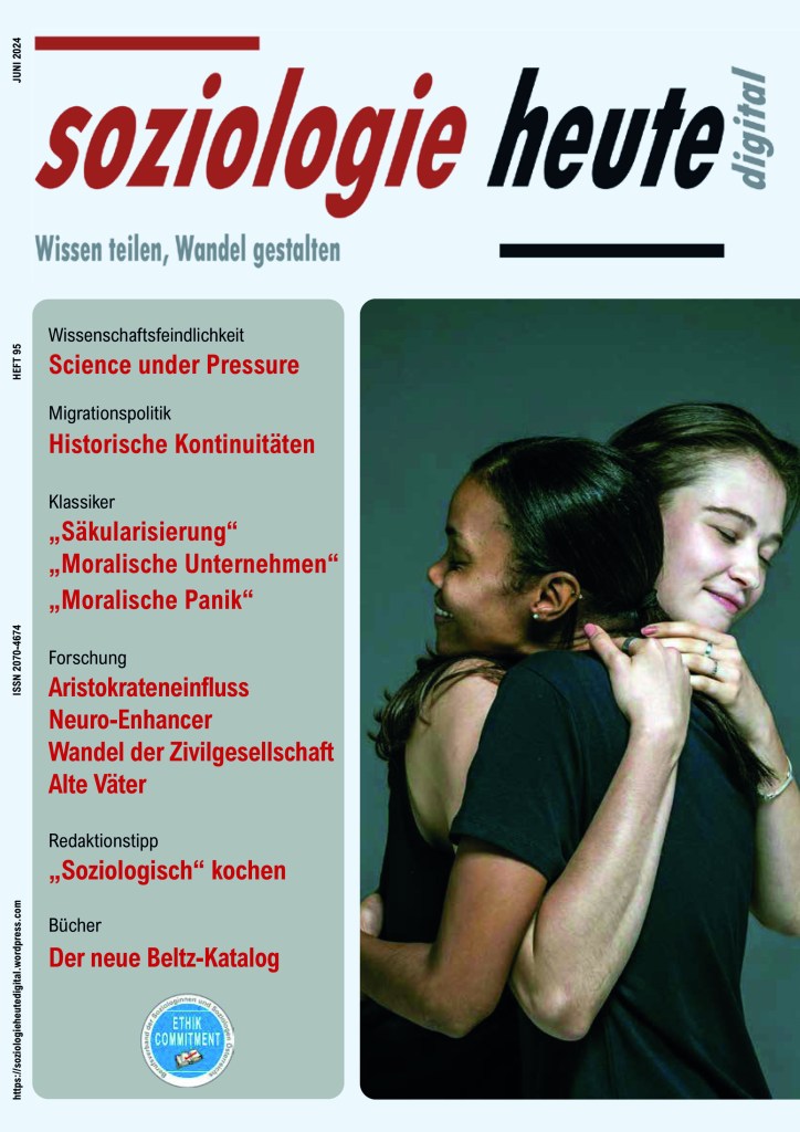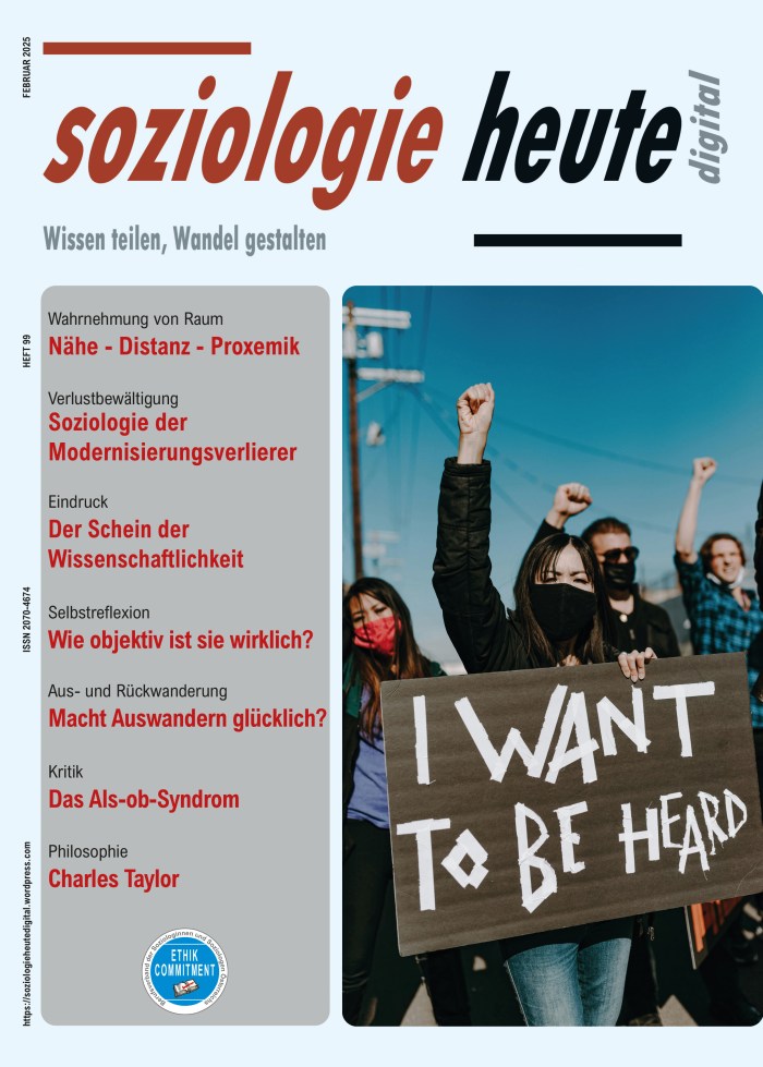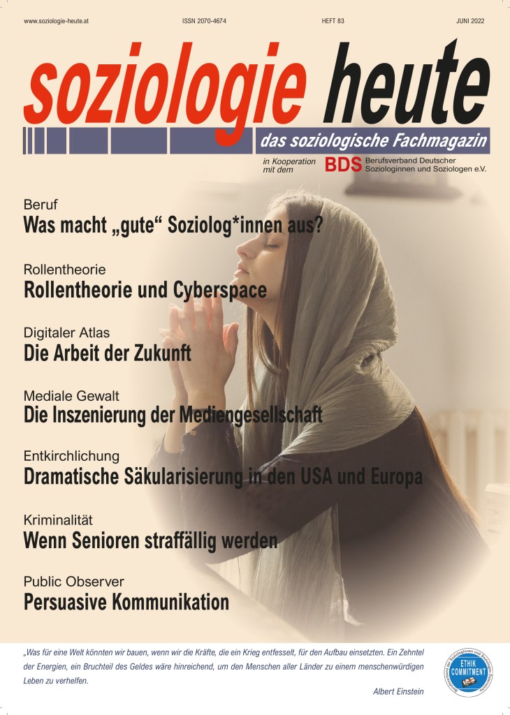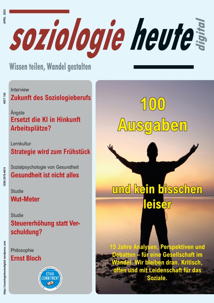 Im April 2024 erscheint soziologie heute zum letzten Mal in gedruckter Form. Aus ökologischen Gründen sowie aufgrund steigender Produktions- und Versandkosten hat sich die Herausgeberschaft nach reiflicher Überlegung zu diesem Schritt entschlossen. Ab Juni 2024 kann man dann soziologie heute im neuen, digitalen Format lesen. Für die Leserinnen und Leser wird soziologie heute digital – so die neue Bezeichnung – damit aber auch günstiger und flexibler.