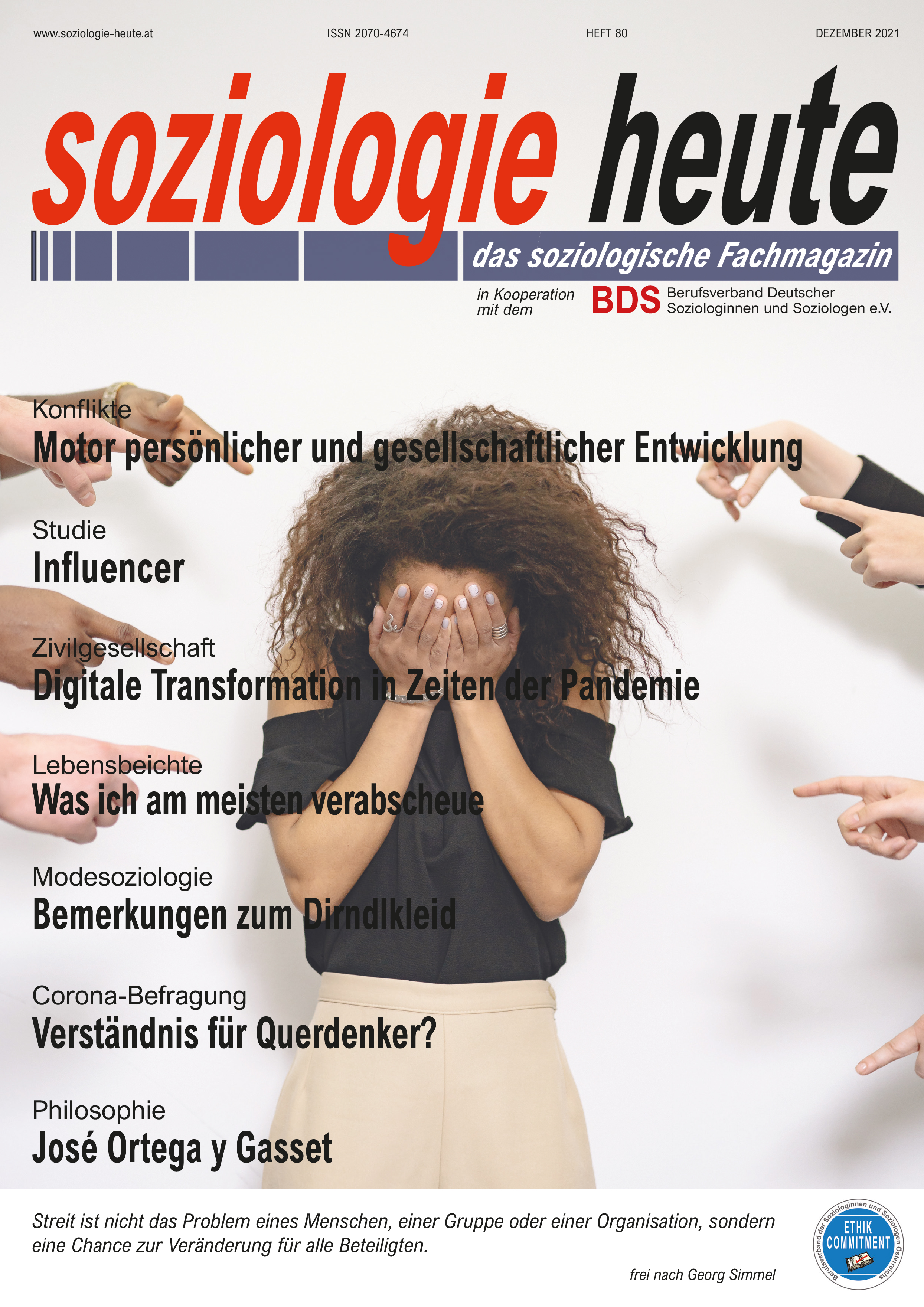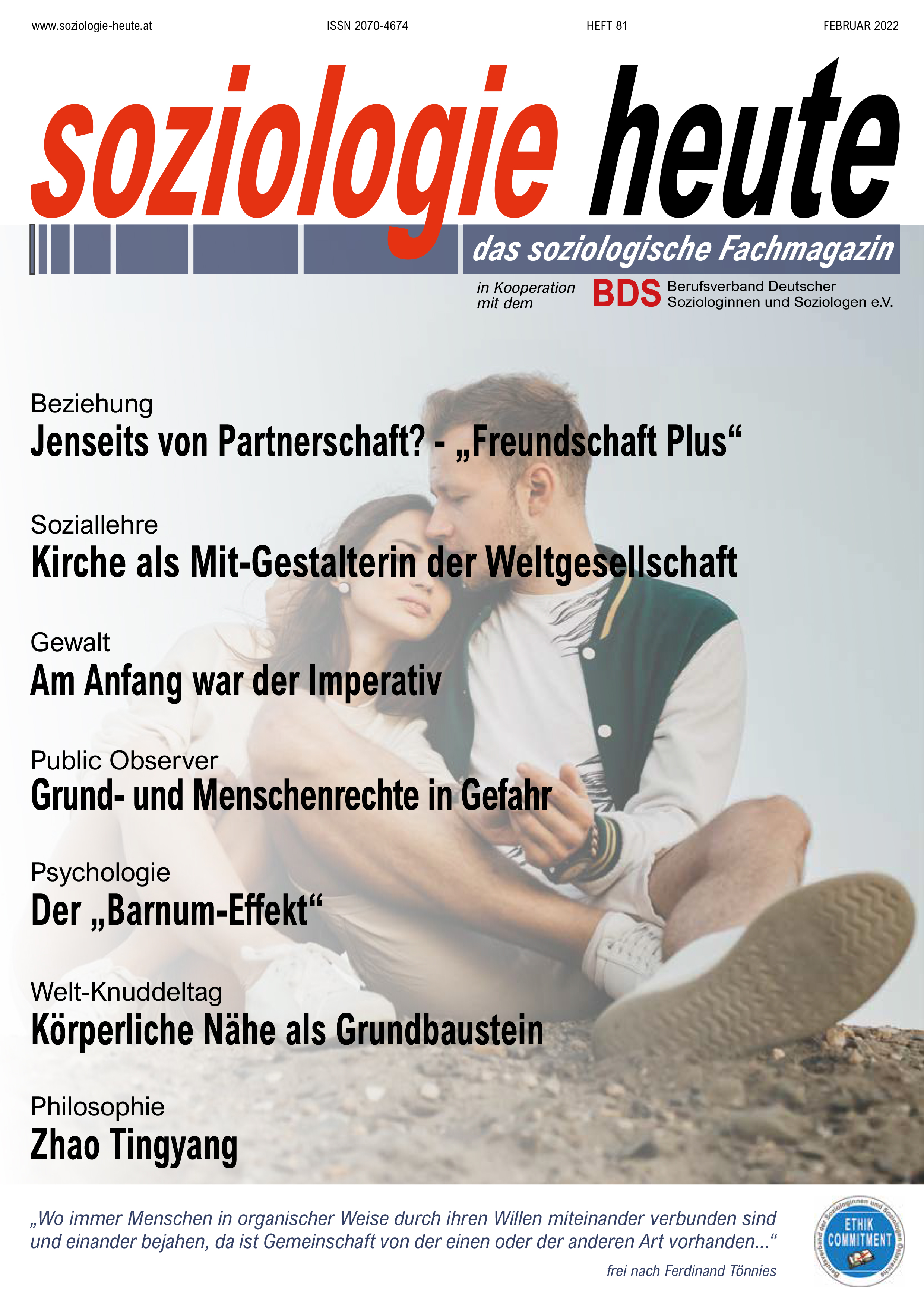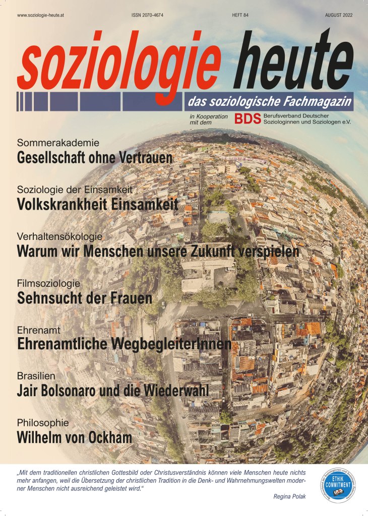 Im April 2024 erscheint soziologie heute zum letzten Mal in gedruckter Form. Aus ökologischen Gründen sowie aufgrund steigender Produktions- und Versandkosten hat sich die Herausgeberschaft nach reiflicher Überlegung zu diesem Schritt entschlossen. Ab Juni 2024 kann man dann soziologie heute im neuen, digitalen Format lesen. Für die Leserinnen und Leser wird soziologie heute digital – so die neue Bezeichnung – damit aber auch günstiger und flexibler.
